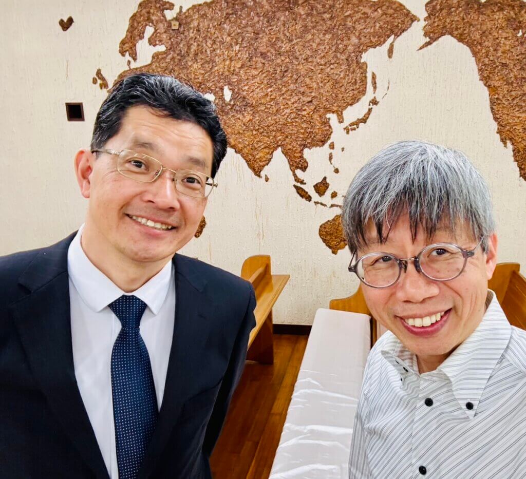 *倉敷教会就任式にて、川口牧師(左)、司式者の斉藤牧師(右)